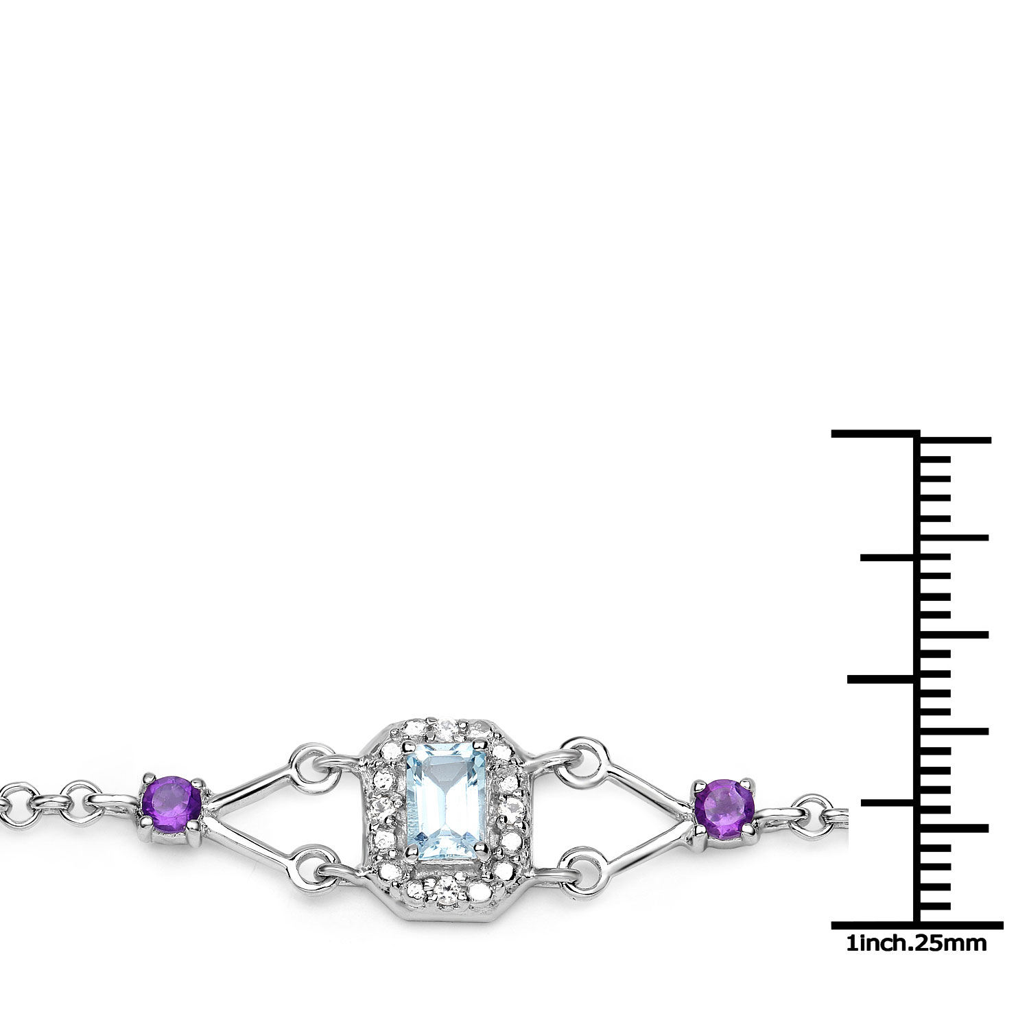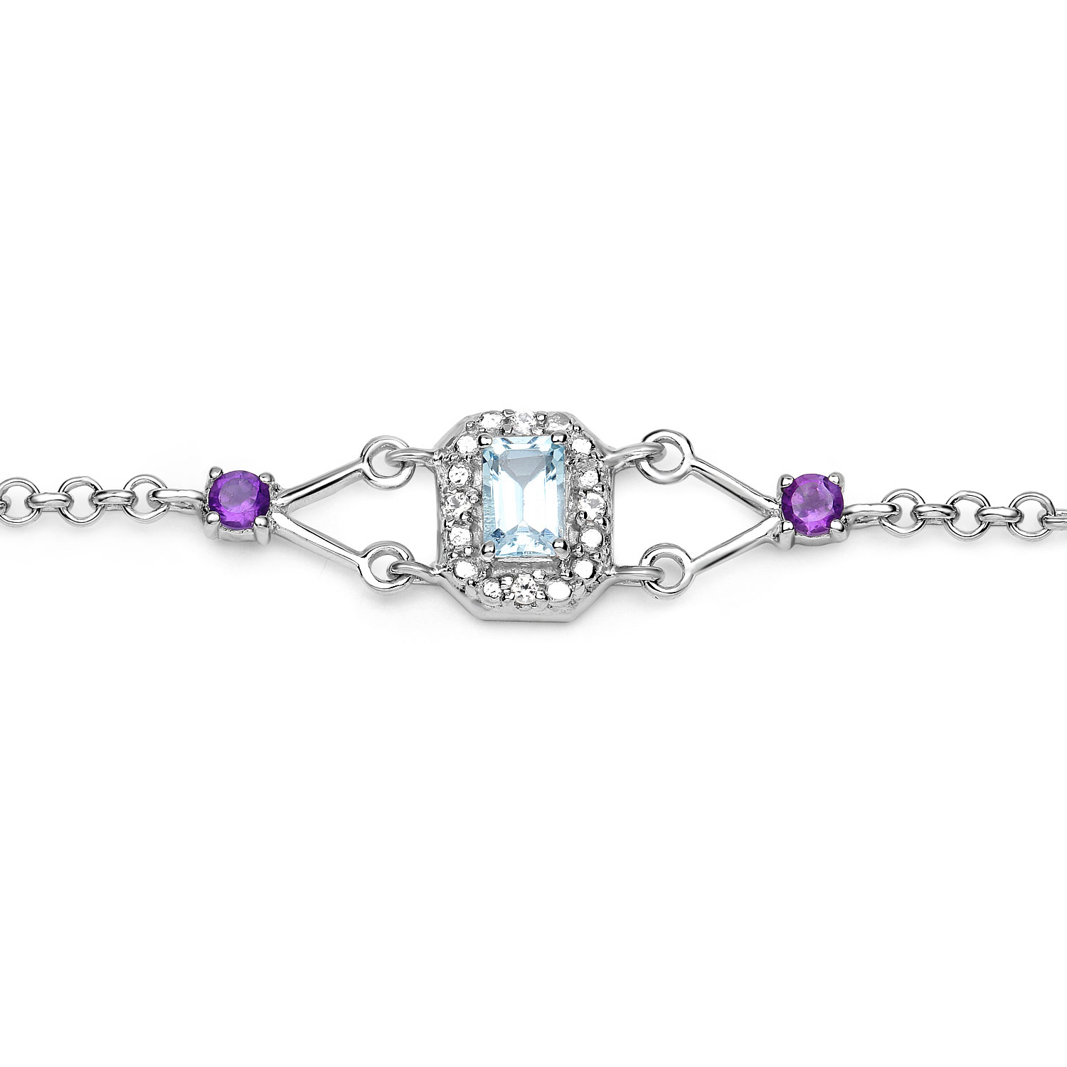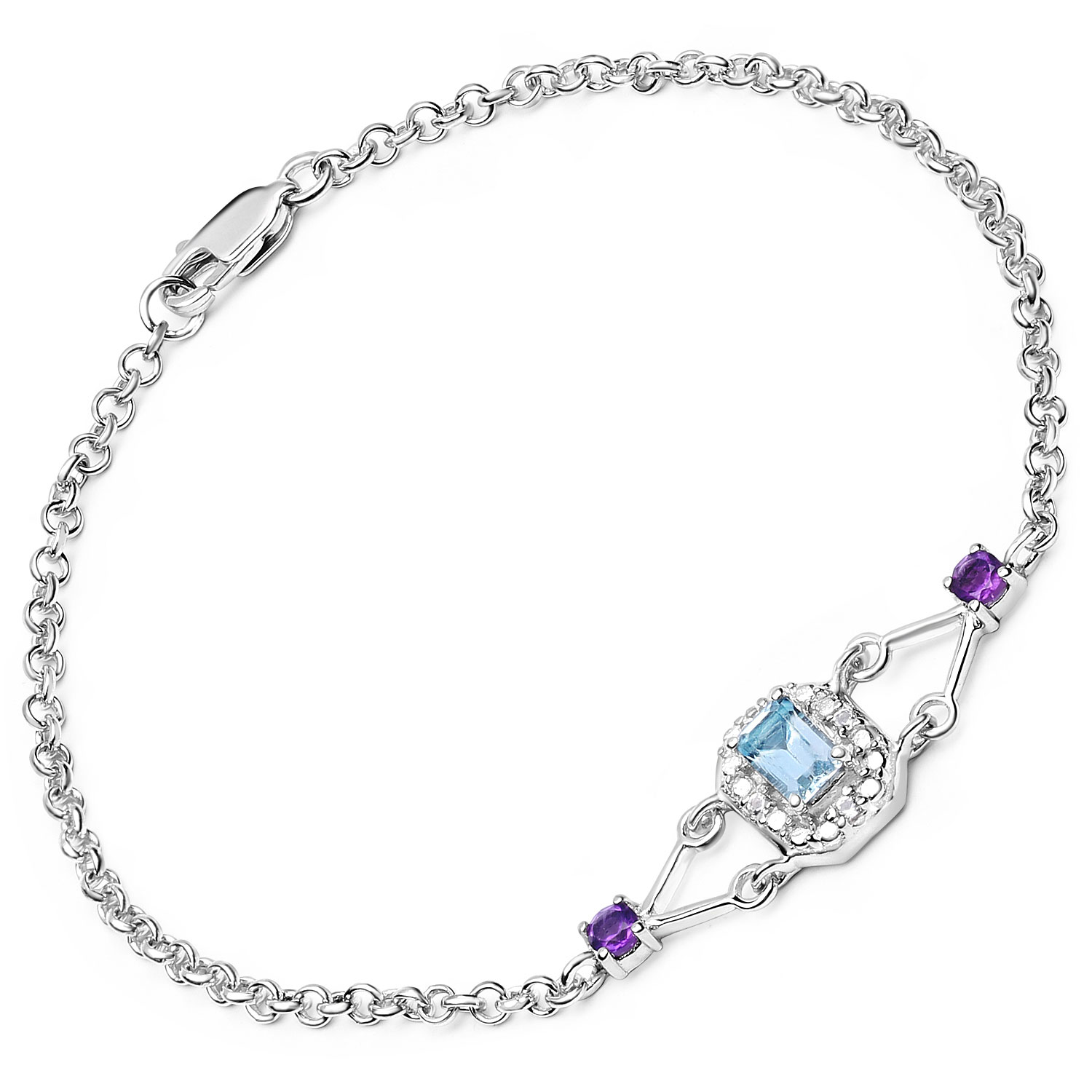 "0.88 Carat Genuine Blue Topaz, Amethyst and White Topaz .925 Sterling Silver Bracelet"