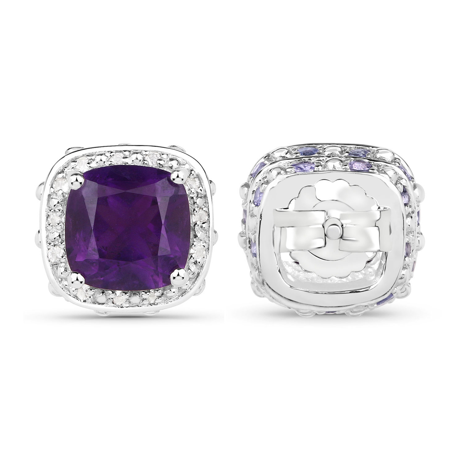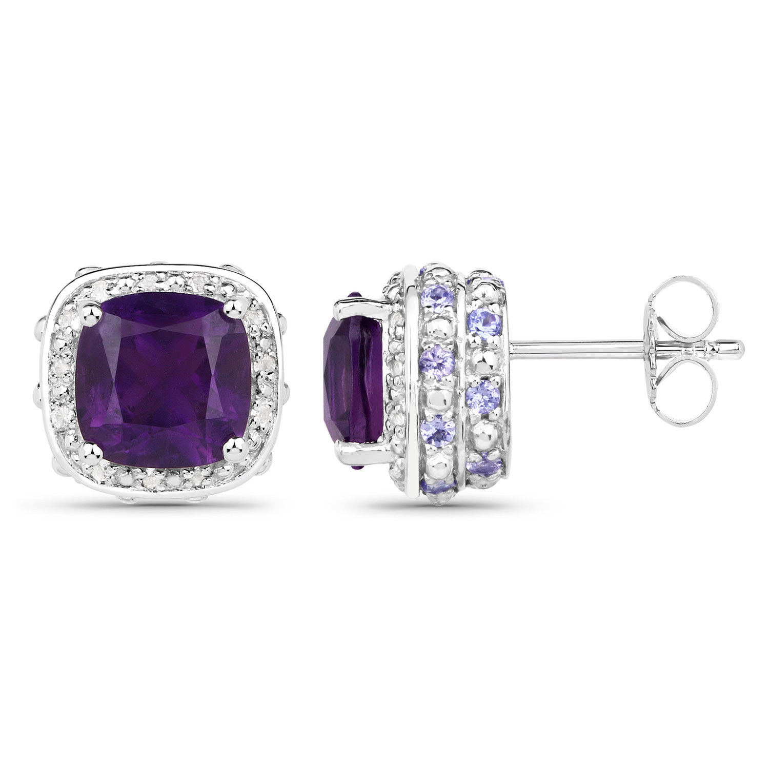"4.52 Carat Genuine Amethyst, Tanzanite and White Topaz .925 Sterling Silver Earrings"