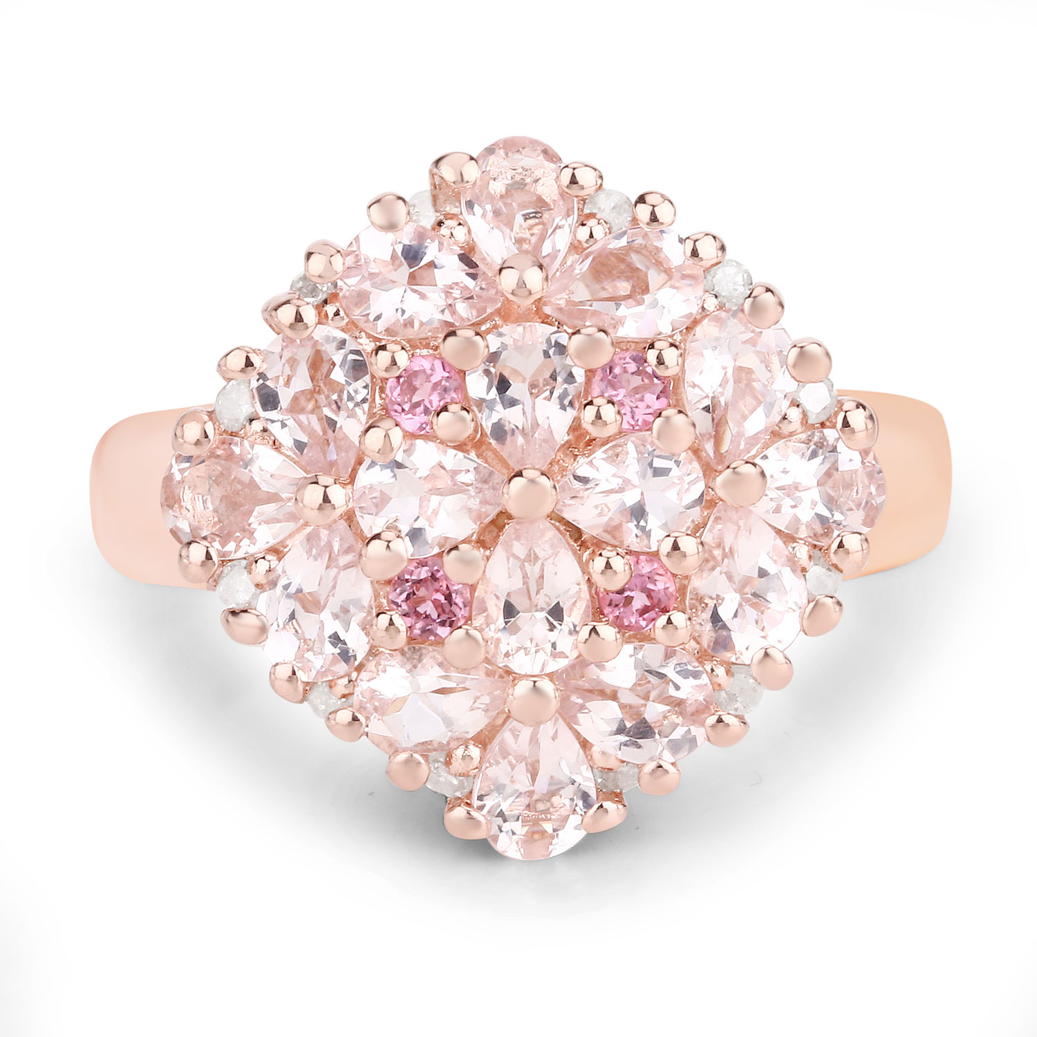 "2.36 Carat Genuine Morganite, Pink Tourmaline and White Diamond .925 Sterling Silver Ring"